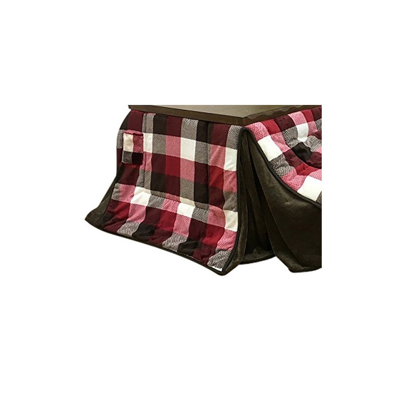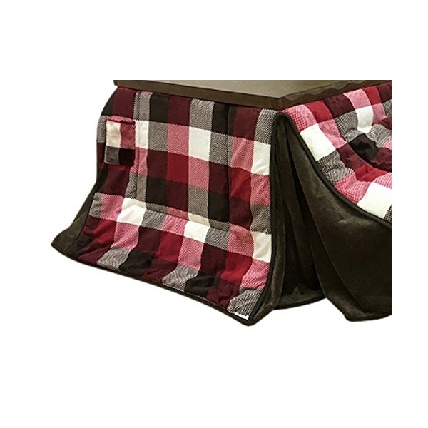 A stylish kotatsu futon with a red checkered pattern.