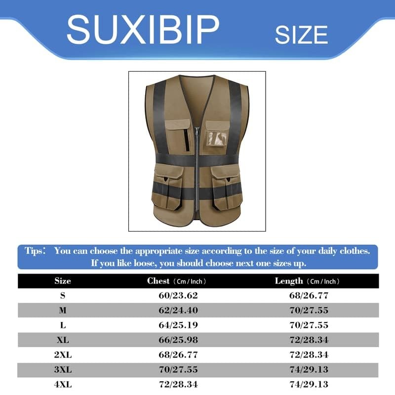 Item: SUXIBIP High visibility reflective safety vest multi pockets