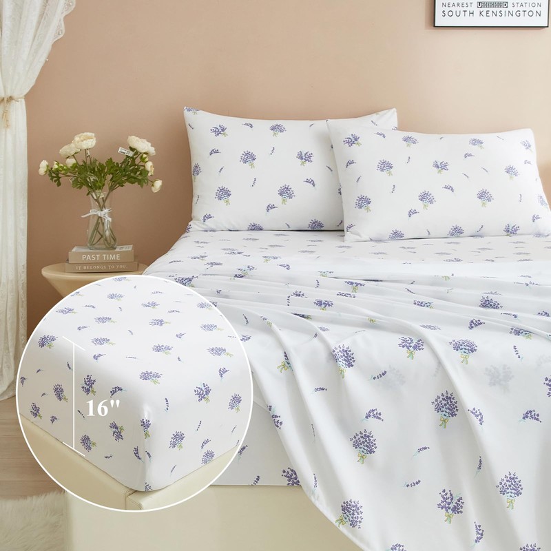 - EXTRA FIT - purple floral sheet set was made of 100% washed microfiber material,which offers strength and durability with exceptional softness.Experience the ultimate comfort and soft touch with our bed sheets, sleep better and wake up each morning feeling refreshed,this washed microfiber sheets is stronger than cotton with ultra-tight knit,these luxury floral bed sheets won't rip or tear after washing.keep you cool,comfortable,and breathable in all seasons.
