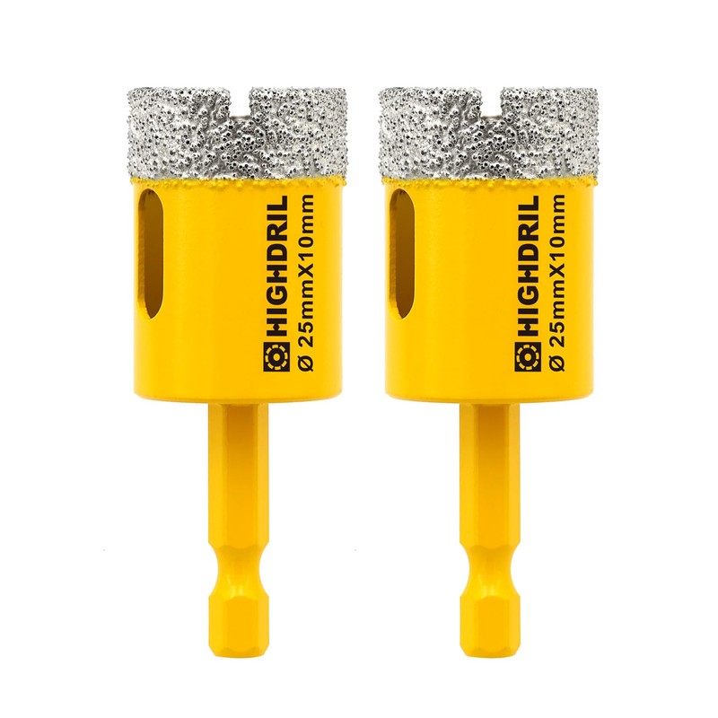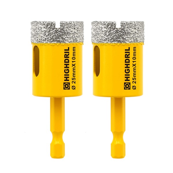 HIGHDRIL Dry Diamond Drill Bits - 2Pcs 25mm 1" Diamond Core Drill Bits with Quick-fit Hex Shank for Granite Marble Porcelain Tile Ceramic