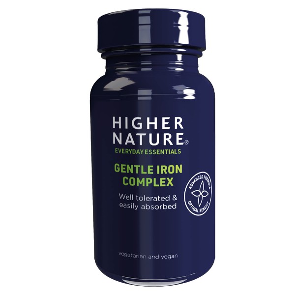 Higher Nature - Gentle Iron Complex - Supports Energy, Cognitive Function & Normal Immune Function - Gentle On The Gut - Gluten Free - Vegan & Vegetarian - 60 Capsules
