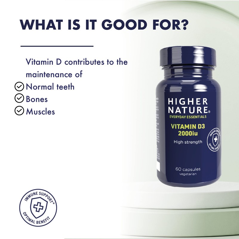 Higher Nature - High Strength - Vitamin D3 2000iu - Immune System Support - Bone & Muscle Support - Vegetarian Friendly - 120 Capsules