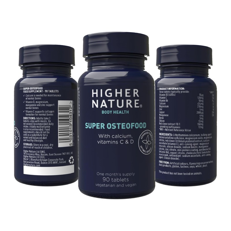 - KEY NUTRIENTS. We've combined key nutrients including calcium, magnesium, boron, silica, manganes, zinc, copper and vitamins C, B6 and D. Higher Nature Super Osteofood is the "go-to" supplement for women who wish to support healthy bones throughout life.