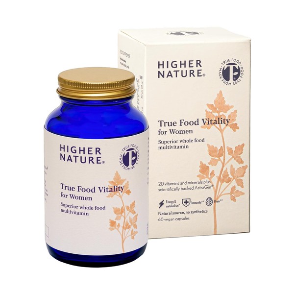 Higher Nature - True Food Vitality for Women - Whole Food Multivitamin for Women - 20 Vitamins & Minerals Including Vitamin C, D, K, B12, and Zinc - Vegan - One Month Supply - 60 Capsules