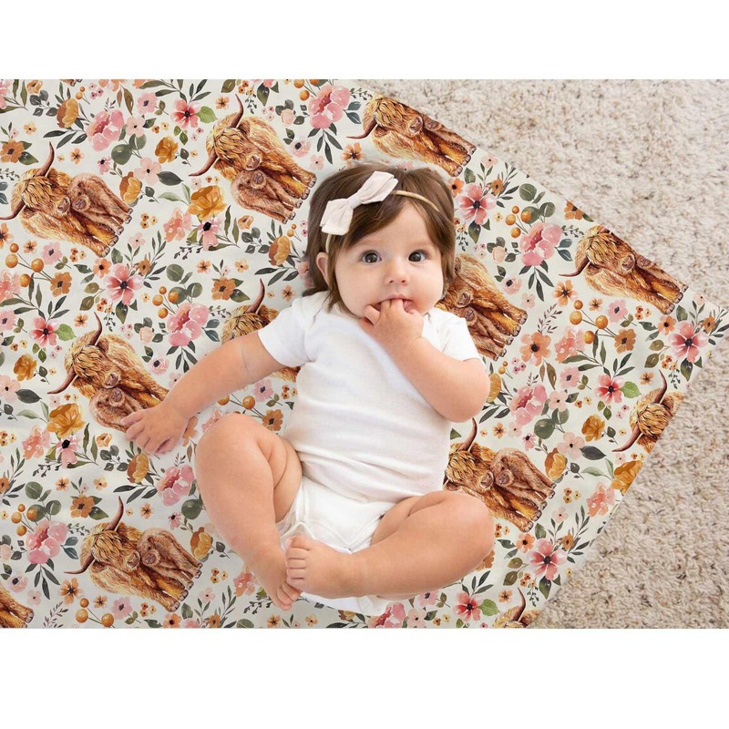 Highland Cow Baby Blanket for Girls, Boho Floral Farmhouse Highland Cow Toddler Soft Minky Blanket with Double Layer Dotted Backing, Nursery Newborn Baby Crib Receiving Blanket Western Cow, 30"x40"