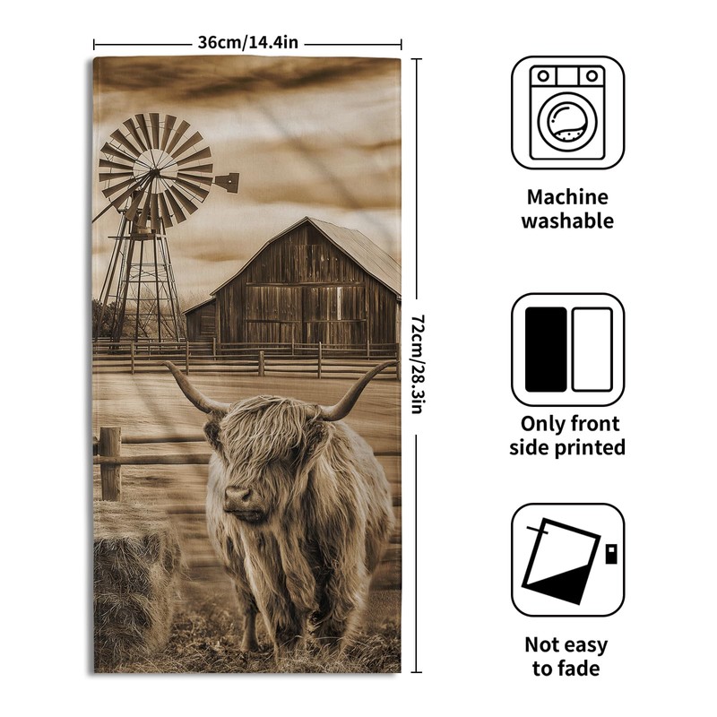 Highland Cow Hand Towels Set of 2 Farmhouse Cattle Decorative Fast Drying Dish Cloths Soft Fingertip Towels for Kitchen Bathroom Gym Gifts