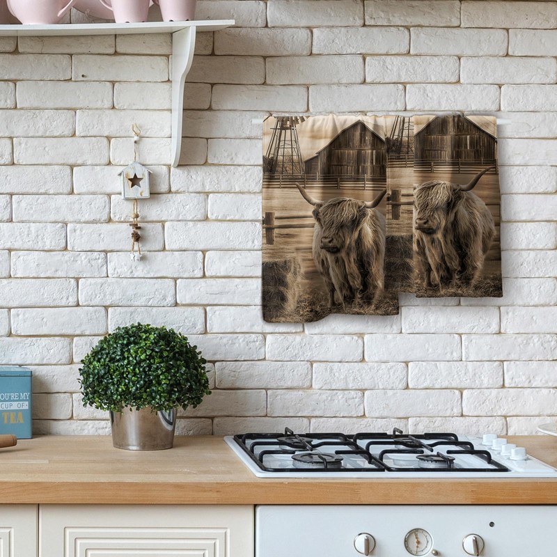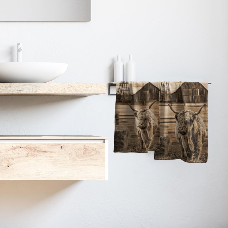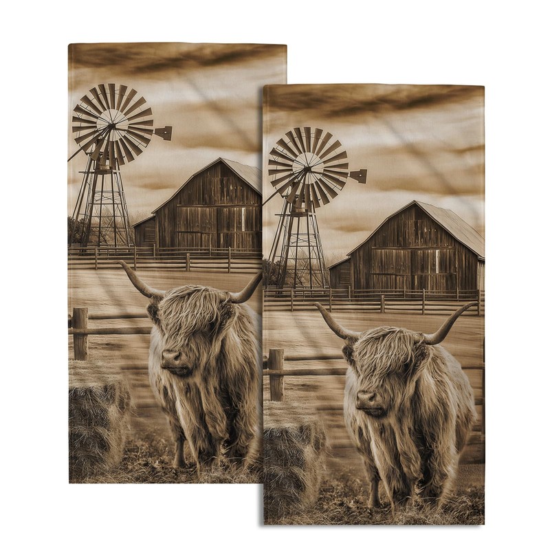 Highland Cow Hand Towels Set of 2 Farmhouse Cattle Decorative Fast Drying Dish Cloths Soft Fingertip Towels for Kitchen Bathroom Gym Gifts