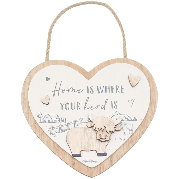 Highland Cow Heart Plaque Home