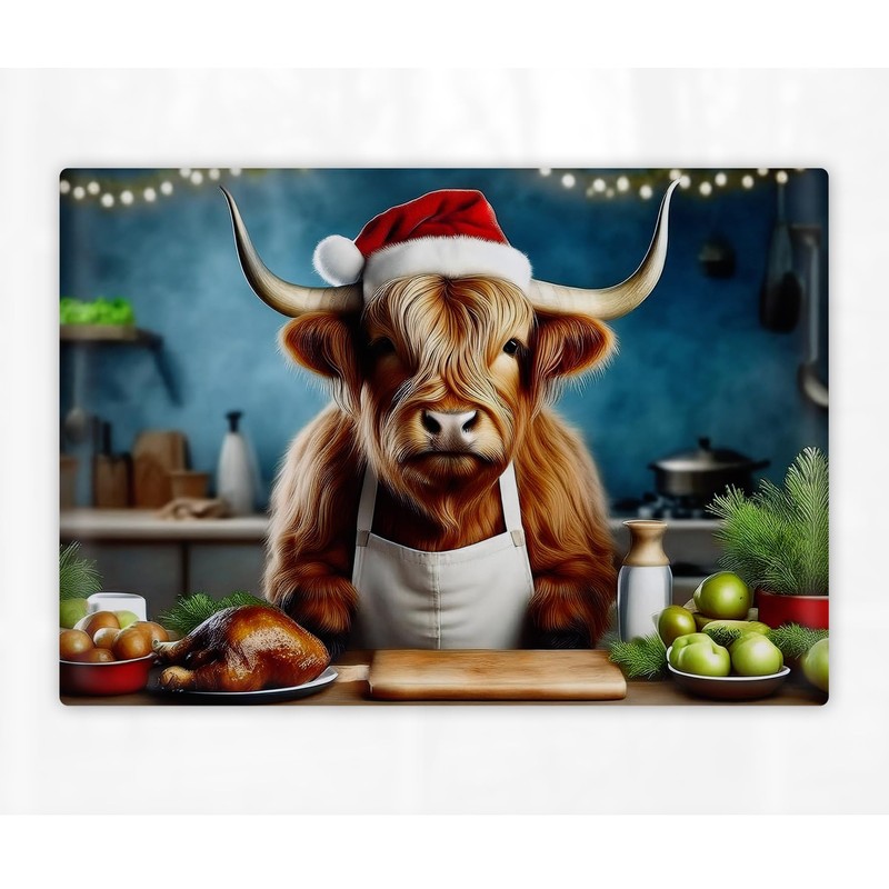 Highland Cow Printed Cutting Board | Worktop Saver | Chopping Board Available in Two Sizes (390x290mm and 285x200mm) (Christmas Cow, 285x200mm (Textured))