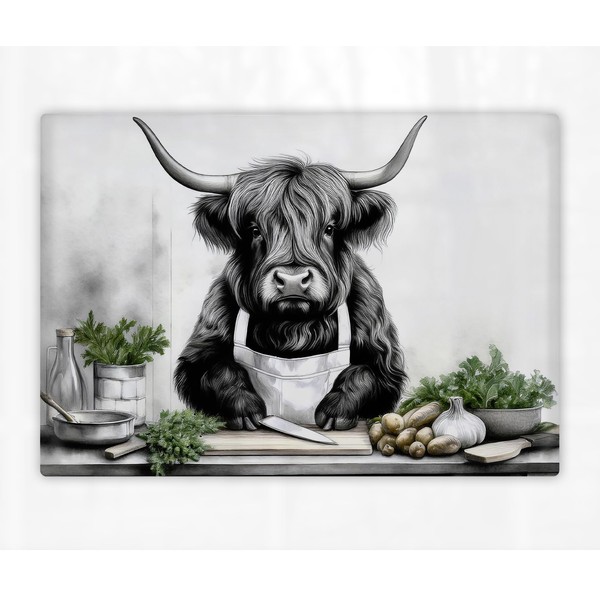 - Unique Design: Featuring a beautiful highland cow illustration, this printed cutting board adds a touch of humour and character to your kitchen.