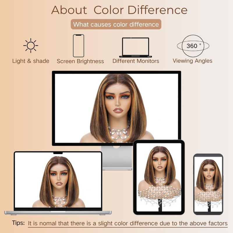 - [Premium Quality Highlight 4/27 Bob Wig Human Hair Materials]: 5x5 glueless highlight 4/27 bob wig is made from 100% brazilian human hair wigs, cut off from young healthy donors, careful care will last for more than 12 months. Highlight bob wig 200 density, ensuring a rich, thick, and natural look. Providing a realistic appearance that blends seamlessly with your natural hair.