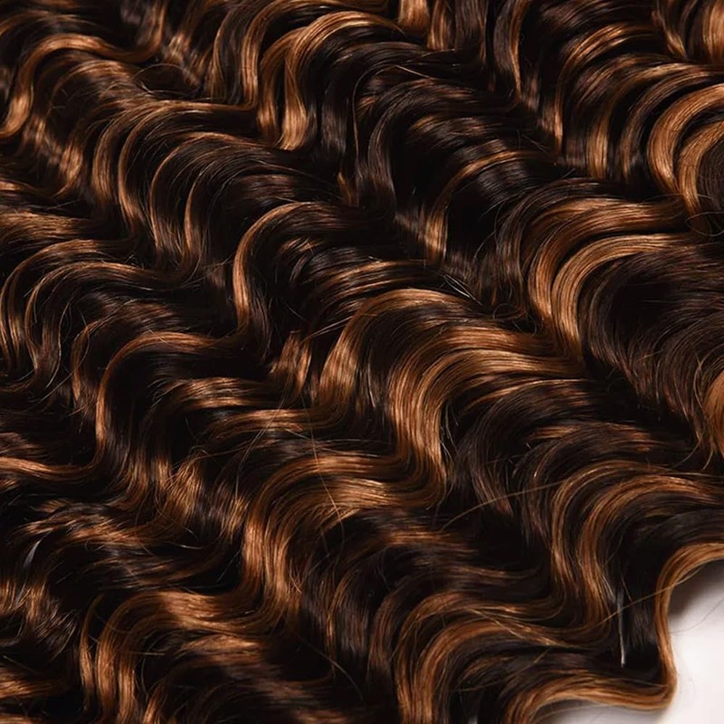 - Ombre Deep Wave Bundles Color: P1B30 Bundles, Two Tone Black Mixed With Light Brown Bundles Human Hair, Shiny And Beautiful