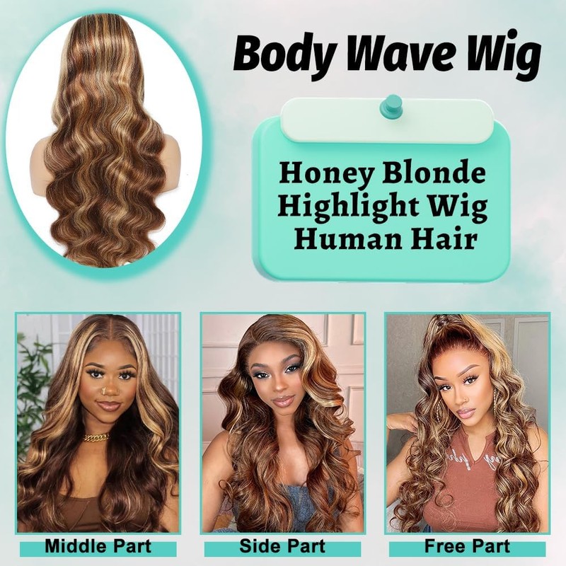 - đăOmbre Lace Front Wig Human Hair Textureă: Highlight 4/27 Ombre Lace Front Wig Body Wave Human Hair Wigs, you can try a ponytail, middle part, bun, half up half down,meatball and so on, there must be one hairstyle suits you.Also this highlight wig human hair lace is hd transparent lace.After you wear it, it seems that the lace disappears as if some kind of magic happens.