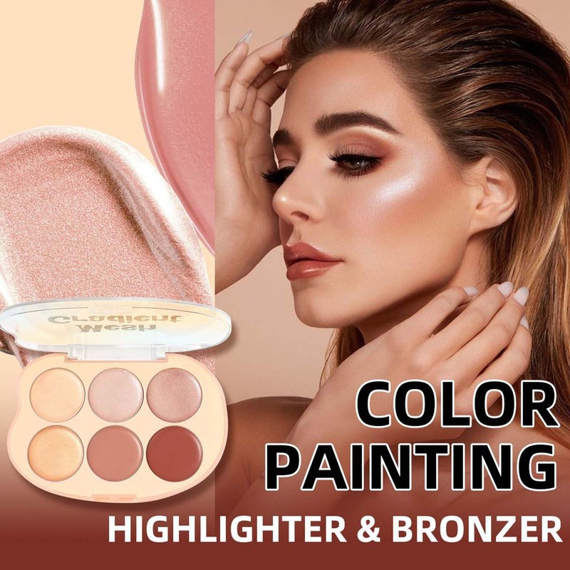 Highlighter Palette | 6 Colors Contour and Highlight Blush Makeup Palette - Waterproof Blendable Cream Cosmetics Kit for Women, Girls Glowing Look, Mature Skin