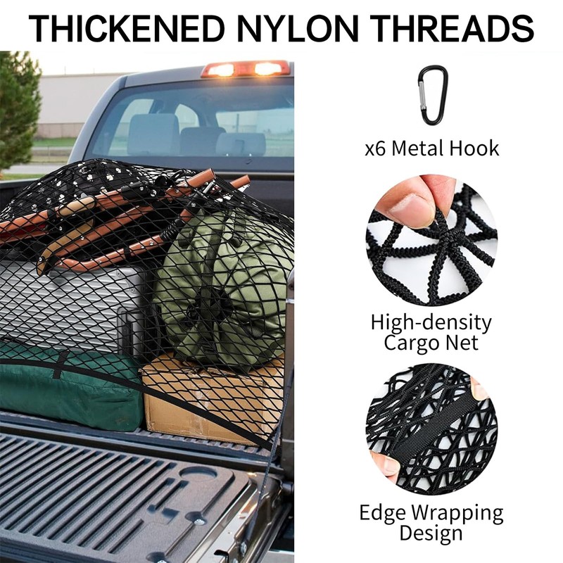 • Highly elastic luggage net for car and caravan: the highly elastic luggage net for pickup trucks stretches from 120 x 120 cm to 210 x 210 cm, for perfect adaptation to vehicles such as Ford Ranger Wildtrak. Ideal for trunk, trailer or cargo area - all you need to do is arrange the goods to be transported, then open the truck net and attach the hooks to the four corners.
