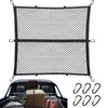 Product Overview: Stretchable cargo net made of durable nylon with metal carabiners for securely fixing items in vehicles, trailers or cargo areas.