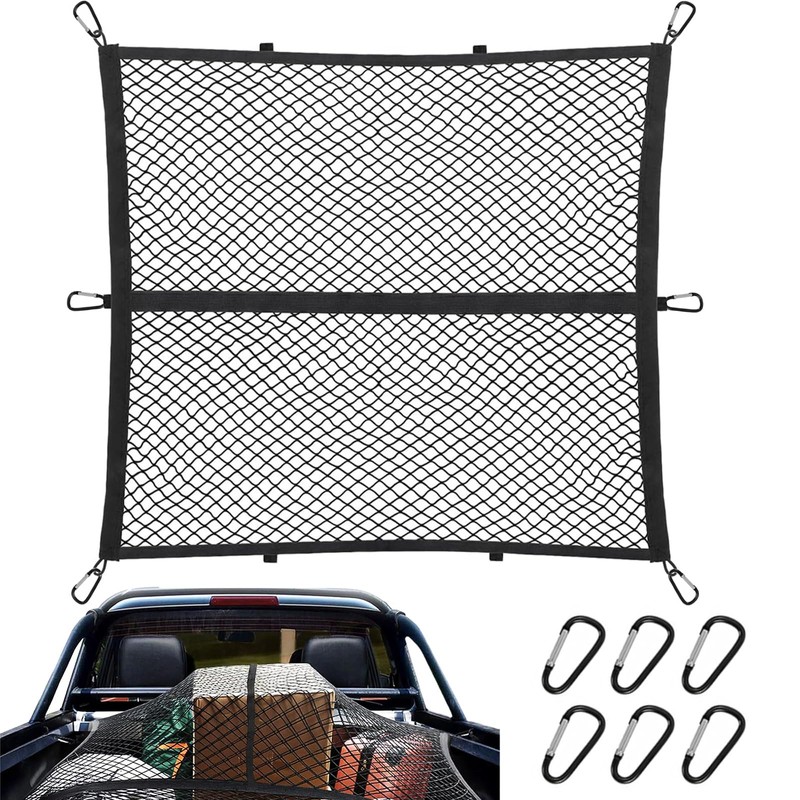 • Robust nylon materials with metal carabiners: reinforced luggage net with high elasticity and 6 robust metal carabiners (removable) for a secure hold. Durable design prevents fraying and keeps even heavy loads stable.