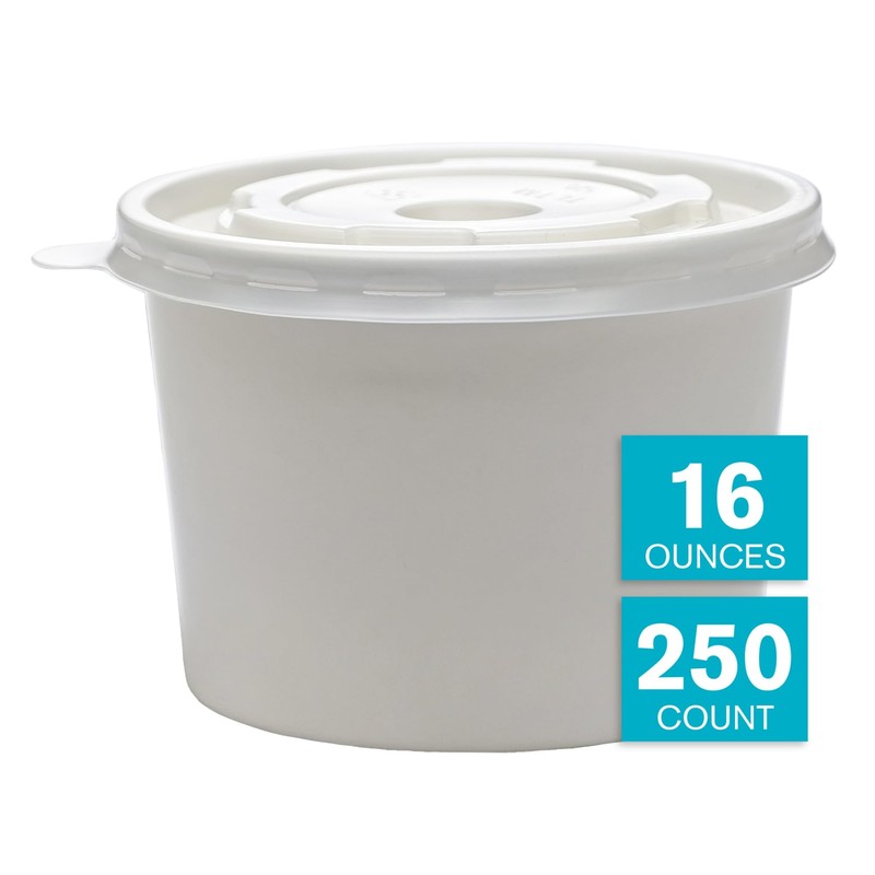 Highmark® Paper Soup Cups With Lids, 16 oz, White, Case Of 250