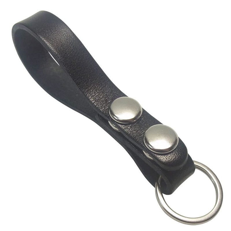 Highstyle 2 Button Tochigi Leather Base Grade Slim Design Belt Loop Key Chain, silver color/black