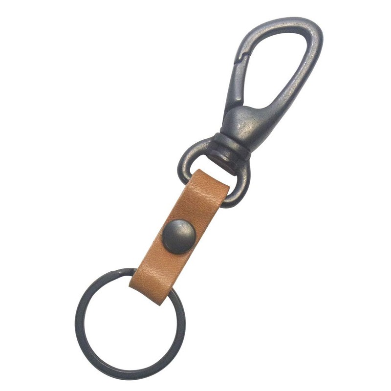 Highstyle Keychain, Tochigi Leather & Antique Black Carabiner, Base Grade Type, Keychain, Darl Black, Camel