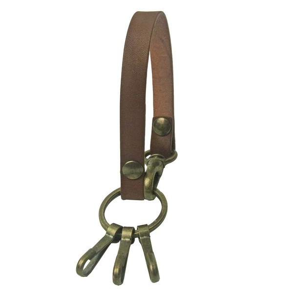 Highstyle Made in Japan Tochigi Leather & Antique Hardware 3 Row Hooks Loop Type Keychain - brown -
