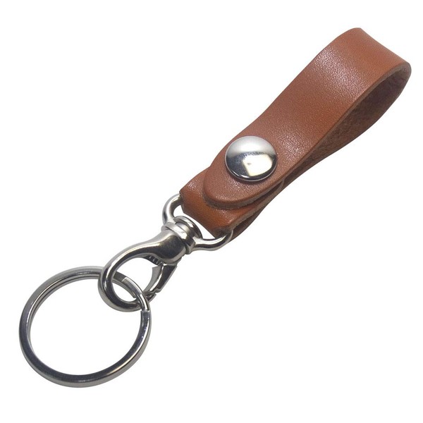 Highstyle Tochigi Leather Key Holder, Made in Japan, Mini Nascan & Independent Ring, Belt Loop Key Chain, silver/camel
