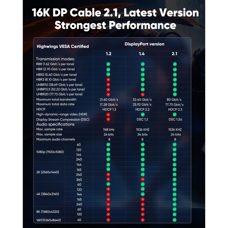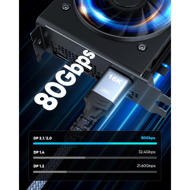 - Wide Compatibility: 16K displayport cable is compatible with FreeSync and G Sync and can be connected from DP-equipped desktop/laptop to monitor. Perfect for gaming, multimedia and applications, it delivers stunning resolution and vibrant colours