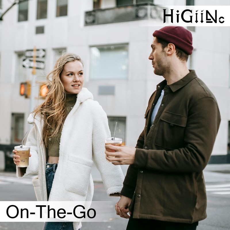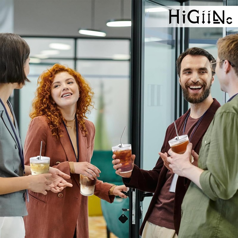 HIGIINC Clear Cups with Lids and Straws Set of 4 Reusable Coffee Cups with Lids
