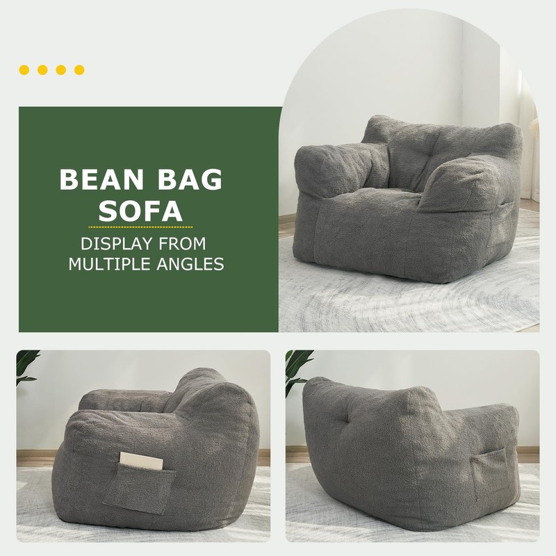- 【SKIN-FRIENDLY AND COMFORTABLE】The bean bag chair for adults is crafted from soft teddy fleece and filled with high-quality, lightweight, and fluffy foam blocks. This ensures ample support and an ultra-soft lounging experience, making you feel like you're wrapped in a soft cloud.