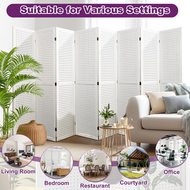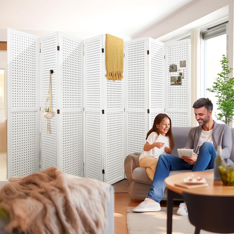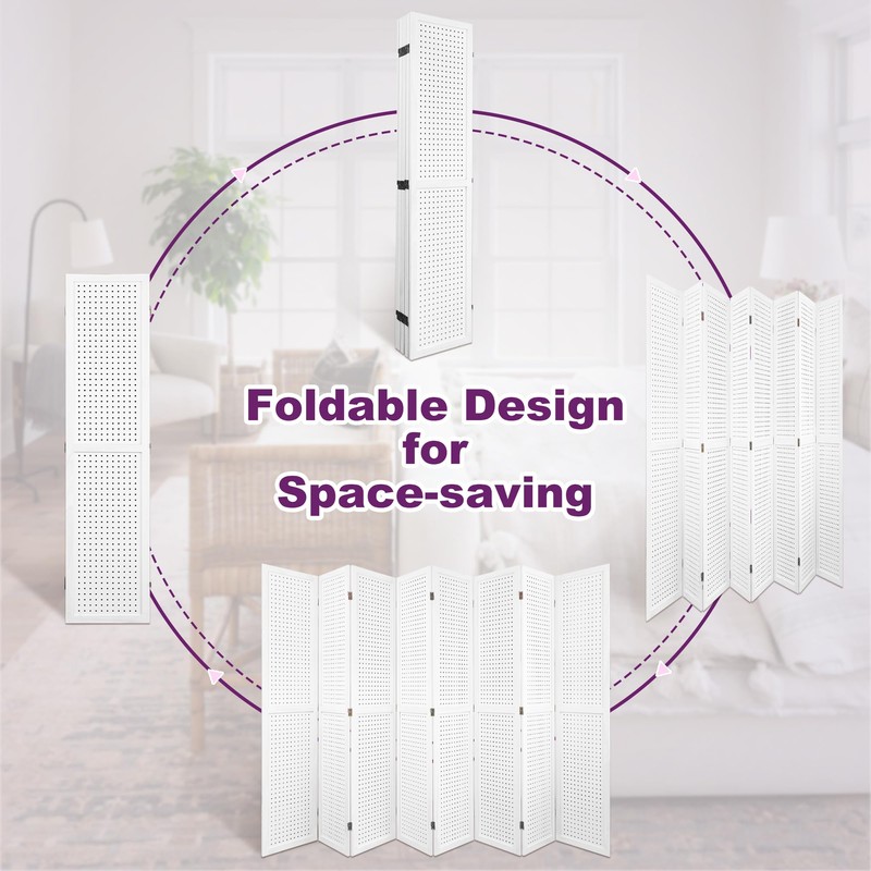 HIGREENA Room Divider 5.6FT Pegboard Display Wood Room Divider Panel 8 Panel Folding Room Divider Room Divider Screen Partition Room Dividers, White