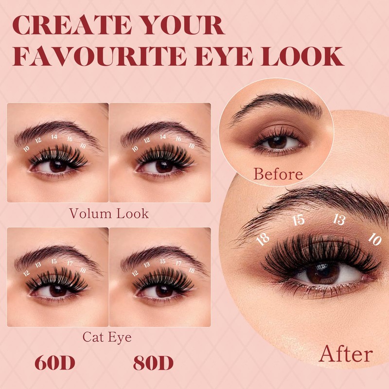 Higu Clace Eyelash Clusters 320PCS, Individual Eyelashes Mixed 10-18mm, Wispy Cluster Lashes Natural Lash Clusters, Eyelash Extensions Easy to Use at Home (60D+80D V01)