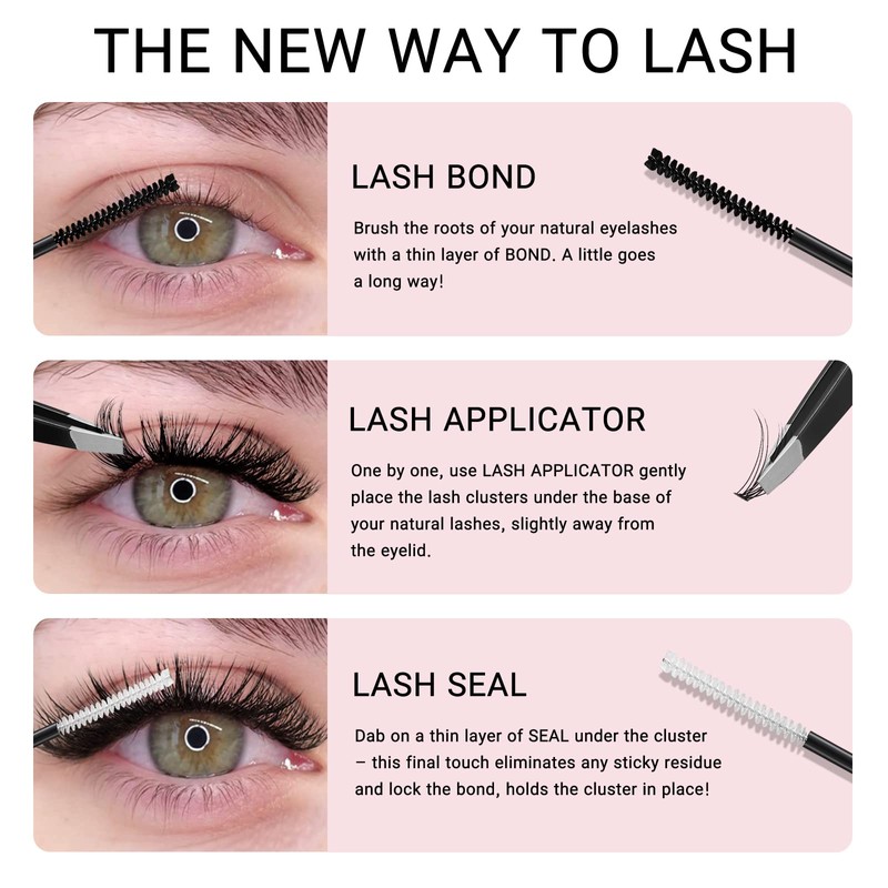 - DIY LASHES CLUSTER AT HOME: With Higu clace lash bond and lash applicator, you can make cluster lash extensions at home by yourself. You can change different styles according to your preferences. You can also remove the cluster individual lashes at any time and make new styles at any time. You don't need to go to the salon to spend exorbitant prices. The best choice to save you money and time