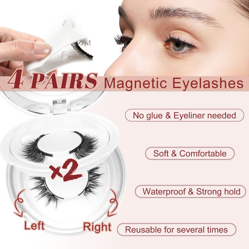 - NO GLUE OR EYELINER REQUIRED: Our upgraded magnetic eyelashes technology provides a comfortable wearing experience for people with sensitive eyes. Say goodbye to the mess of glue for beginners with our magnetic eyelashes. The magnetic design ensures a secure fit without the need for lash glue, so you don't have to worry about your eyelashes falling off! And it can be easily matched with any cosmetics without eyeliner, specially designed for lazy people!