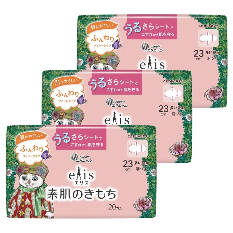 (Higuchi Yuuko Planned Product) Ellis Bare Skin Texture 9.1 inches (23 cm) (Many Daytime Use), Includes Wings, 20 Sheets x 3 Pieces (Bulk Purchase)