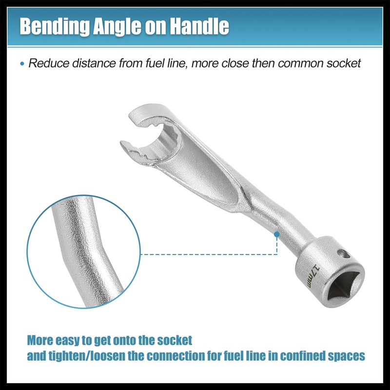 - Fitting: Sturdy: [Bending Angle on Handle] Having this slight bending angle on handle, the distance only being inches away from fuel line, more close then common socket. It's very tight to get to install a socket in a vehicle and especially to get onto the socket and tighten and loosen the connection for the fuel line in confined spaces.
