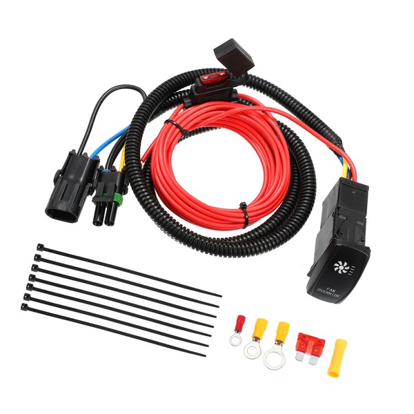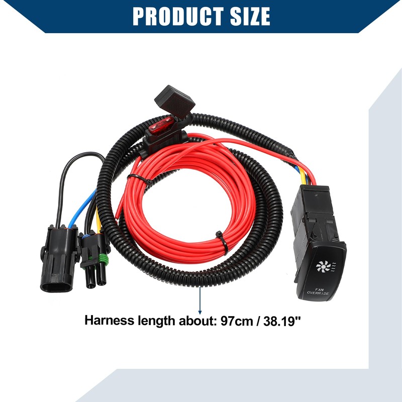 - PACKAGE LIST: 1 Set Fan Over Ride Over Ride Rocker Switch Kit. (Not include Relay). Please note that this 4 foot harness fits vehicles which with front mounted fan ONLY. Please get longer wires if replace the rear mounted fans.