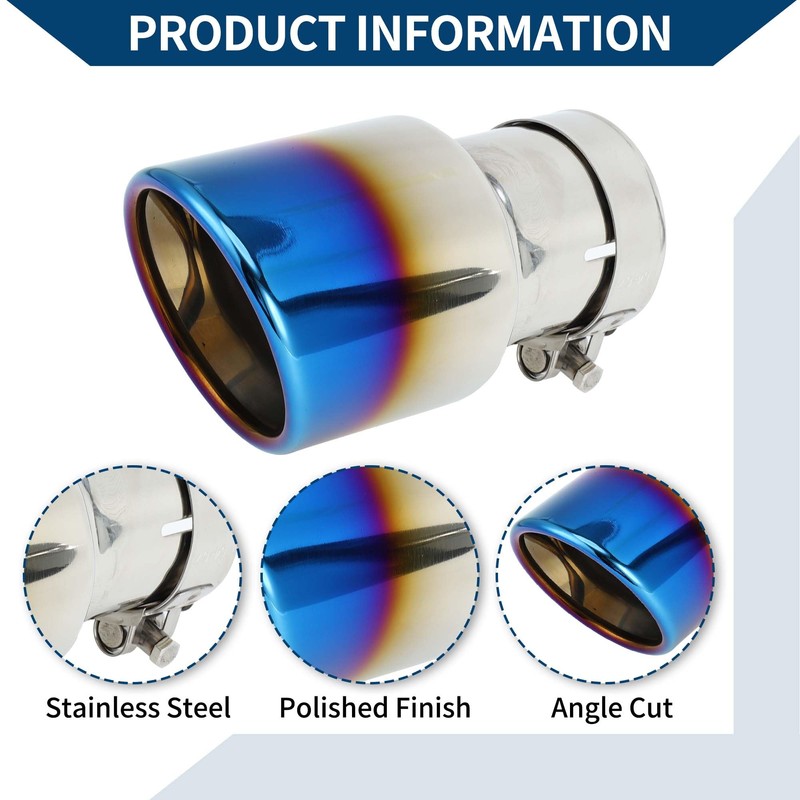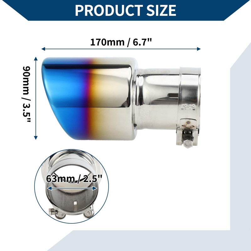 Hihaha Roll Edge Slant Exhaust Tip Clamp Rear Tailpipe Car Clamp on Stainless Steel 2.5" Inlet 3.5" Outlet 6.7" Length 1 Set Silver Tone Blue