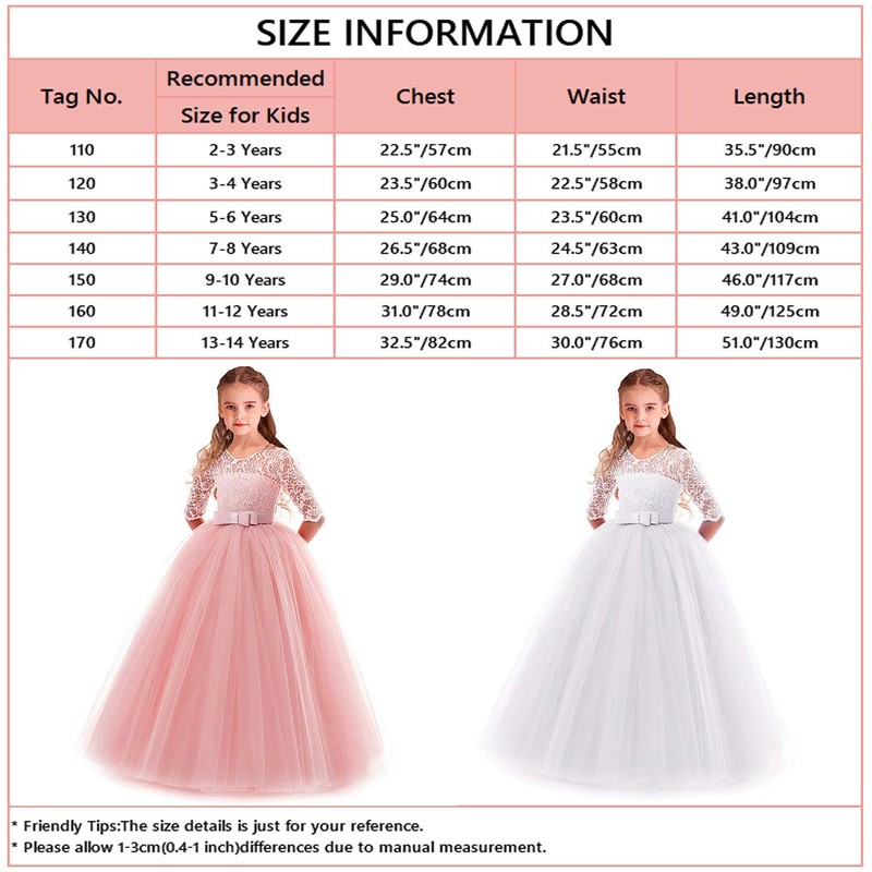- ♣ Size for girls 2-14 years. Please check the last image for size details before checkout. Let's create unforgettable memories with our applique tulle lace dress on your girl's special day! No matter where you take her dressed up in it, she will become the center of attention.