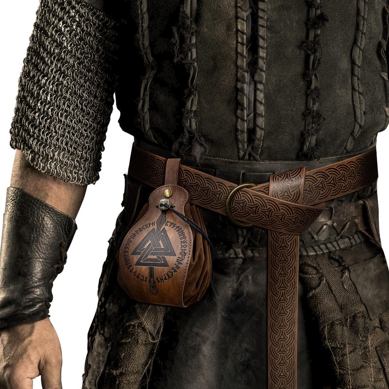 - COOL DESIGN- Retro Belt and Belt Bag, with cool embossed pattern, bring you back to the Medieval ages. You will be the star in LARP and Ren Faire. It's suitable for daily use,too. The Nordic pouch You can use as a wallet and dice bag.