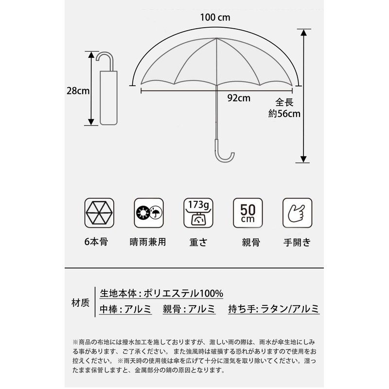 - Fashionable Design: Excellent Practicality: Ribs Length: Approx. 19.7 inches (50 cm); Diameter: Approx. 36.2 inches (92 cm); Length when stored: Approx. 11.0 inches (28 cm); Weight: 6.7 oz (173 g) / 6.1 oz (183 g). Light shielding rate: 99.9% UV shielding rate: 99.9% UPF rating: UPF50+ *Each size and weight may vary slightly depending on the product. This folding parasol is a convenient and convenient item for commuting to work or school, watching sports, summer festivals, events, camping, excursions, outdoor activities, travel, etc