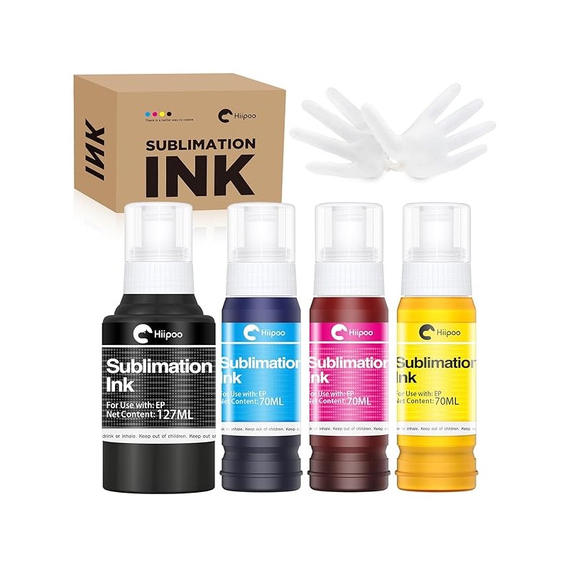 Hiipoo Sublimation Ink Refilled Bottles Compatible for ET2400 ET2720 ET2760 ET2750 ET4800 ET-2800 ET-2803 ET-2850 Inkjet Printers Heat Press Transfer on Mugs T-Shirts