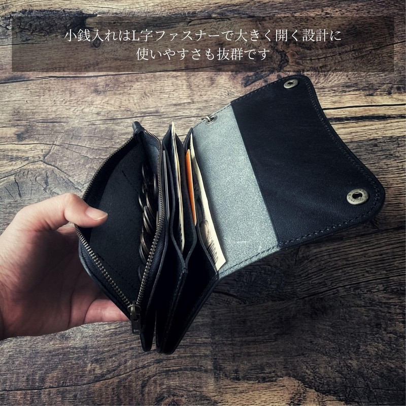 hik0009 Trucker Wallet Tochigi Leather, Made in Japan, Genuine Leather, Long Wallet, Men's, Bi-folded, L-Shaped Zipper, Trucker Wallet, Leather, Bikers Wallet, Black