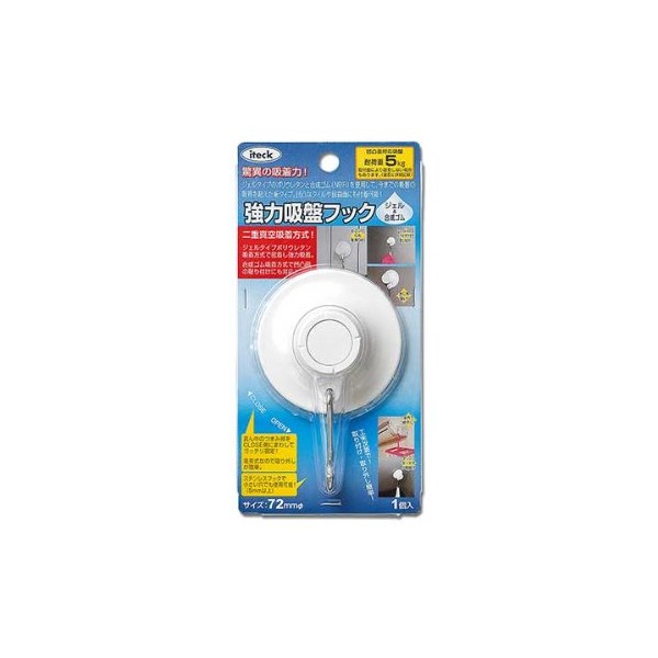 Hikari 00869271-1 KQWJ-720 Strong Suction Cup Hook, Large, White, 2.8 inches (72 mm)