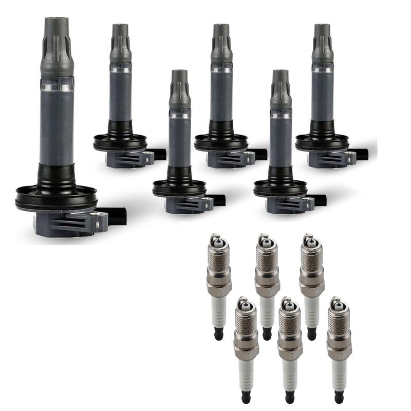 HIKARU PARTS 6pcs Ignition Coil Pack and Spark Plugs Compatible with Ford Lincoln Mazda Mercury MKZ MKX MKT Edge Sable Taurus CX 9 CX-9 6 Flex Sable 3.5 3.7 V6 2007-2016 UF553