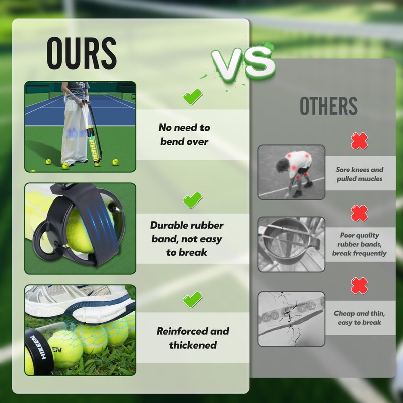 - [PICKUP BALL AT ANY ANGLE] Whether under the net or in the corner of the court, the ennis ball pickup tube is designed to pick up the ball effortlessly. Let you focus more on the fun of the sport! After strict QC inspection to ensure quality and durability. If you are not satisfied with any product, please contact us and we will solve the problem for you within 24 hours.