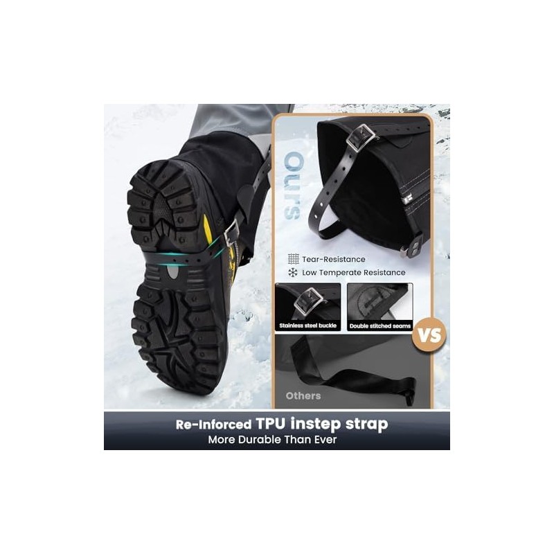 - ππ¨π£ππ₯ππππ πͺππ§ππ₯π£π₯π’π’π πππ£π£ππ₯ & π§π£π¨ ππ‘π¦π§ππ£ π¦π§π₯ππ£π¦ - Better than normal gaiters with velcro, which are easier to get dirt and cannot withstand long-term use, our gators for hiking are made of durable waterproof zippers, which provide you with more convenience and durable. The upgraded reinforced instep straps with low temperate resistance, work great in ice and rock without broken, and can be easily adjusted to ensure the gators fit your shoes.
