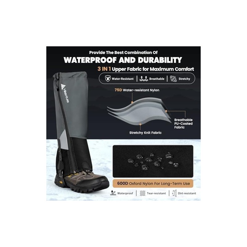 - β€οΈ π£π₯π’π©πππ π π£π₯π’π§πππ§ππ©π ππ’π©ππ₯ π§π’ ππππ£ π¬π’π¨π₯ ππππ¦ ππ₯π¬ ππ‘π πππππ‘ - Don't let snow, rain, rocks or dust interfere with your hiking! Our gaiters are designed for rugged conditions, such as walking through deep snow or hiking in bad weather, help keep water, dirt, scree and snow out of your footwear - Enjoy your travel time with this comfort gaiters for women while hiking, climbing, running, skiing!