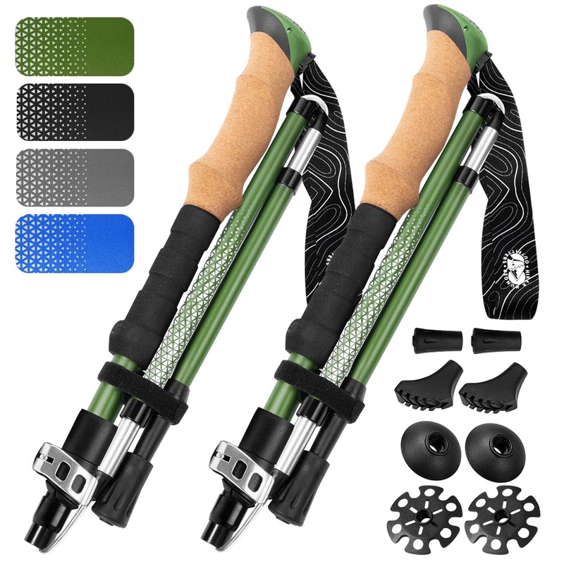 - Superior Materials - Our trekking poles are built to last featuring metal flip locks, reinforced joints, and a choice of Cork or EVA foam grips with EVA foam extensions. These folding hiking stick are designed to withstand tough conditions.