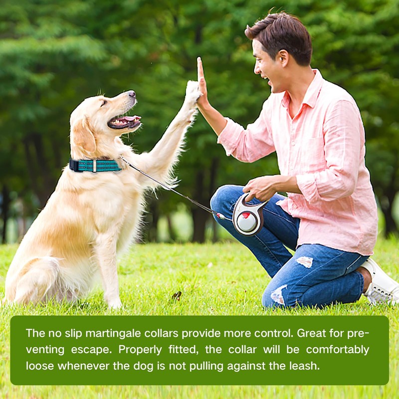 - 【Durability】Soft nylon dog collar and heavy-duty hardware won't easy loose or fray; Strict pulling test conducted before production. Properly fitted, the martingale dog collar will be comfortably loose whenever the dog is not pulling against the leash