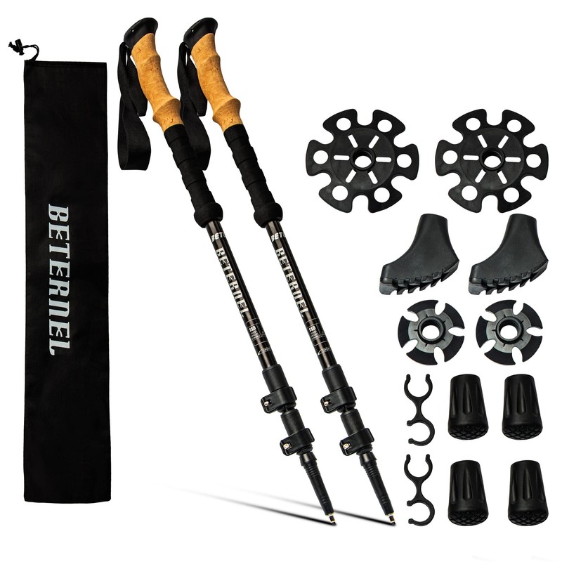Hiking and Walking Poles- Pair of 2 Walking Sticks- Beternel Ultra Strong Streking - Lightweight Collapsible Hiking Poles -Adjustable Hiking Poles -7075 Aluminum with Cork Grip-Ski Sticks